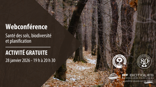 En ligne - Cette webconférence mettra en lumière le rôle essentiel de la santé des sols, du maintien de la biodiversité et de la connectivité entre les massifs forestiers pour renforcer la résilience des forêts privées.