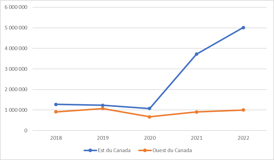Évolution des importations canadiennes de pommes de terre biologiques (dollars canadiens)
